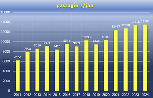Onze fietspont heeft afgelopen jaar ruim 13.000 passagiers overgezet. Sinds corona is dat aantal flink gestegen (zie grafiek). Daar zijn veel mensen uit de directe omgeving van het pontje en uit Franeker en Leeuwarden, waar we tussenin liggen. Daarnaast zien we ook aardig wat toeristen, zoals Belgen en Duitsers. Maar ik heb ook mensen die verder weg kwamen: uit Zuid-Afrika of Canada bijvoorbeeld.