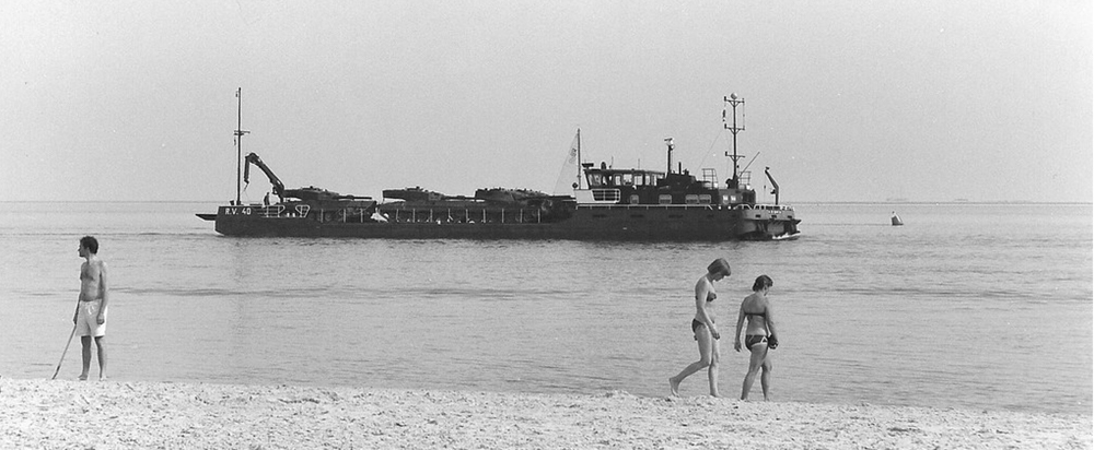 Sleepboten en tankveervlotten strand Vlieland